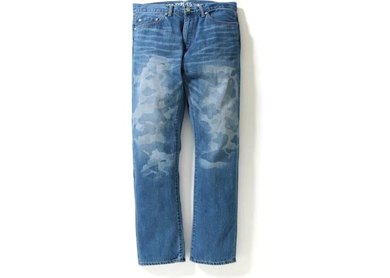 BAPE 2008 Type-05 Damaged Camo Denim Pants Pants Indigo
