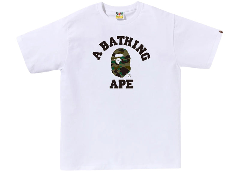The BAPE A Bathing Ape 1st Camo College Tee White/Green is now available at Side Kicks!