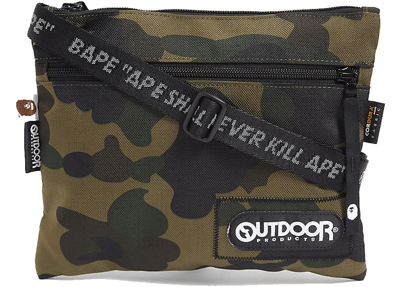 The BAPE A Bathing Ape Bape x Outdoor Products 1st Camo Mini Shoulder Bag Green is now available at Side Kicks!