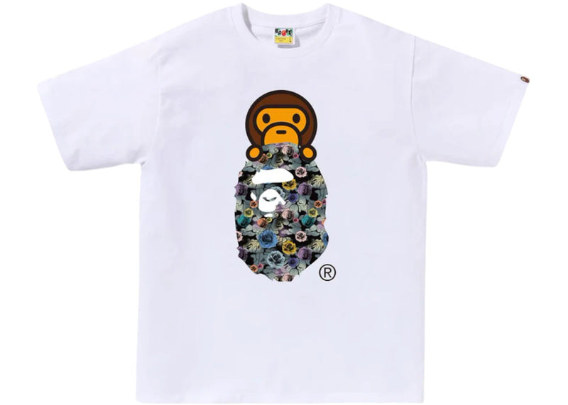 The BAPE A Bathing Ape Floral Camo Milo On Ape Head Tee White is now available at Side Kicks!