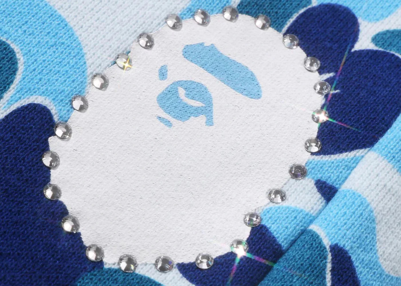 The BAPE ABC Camo Crystal Stone Sweat Pants Blue is now available at Side Kicks!