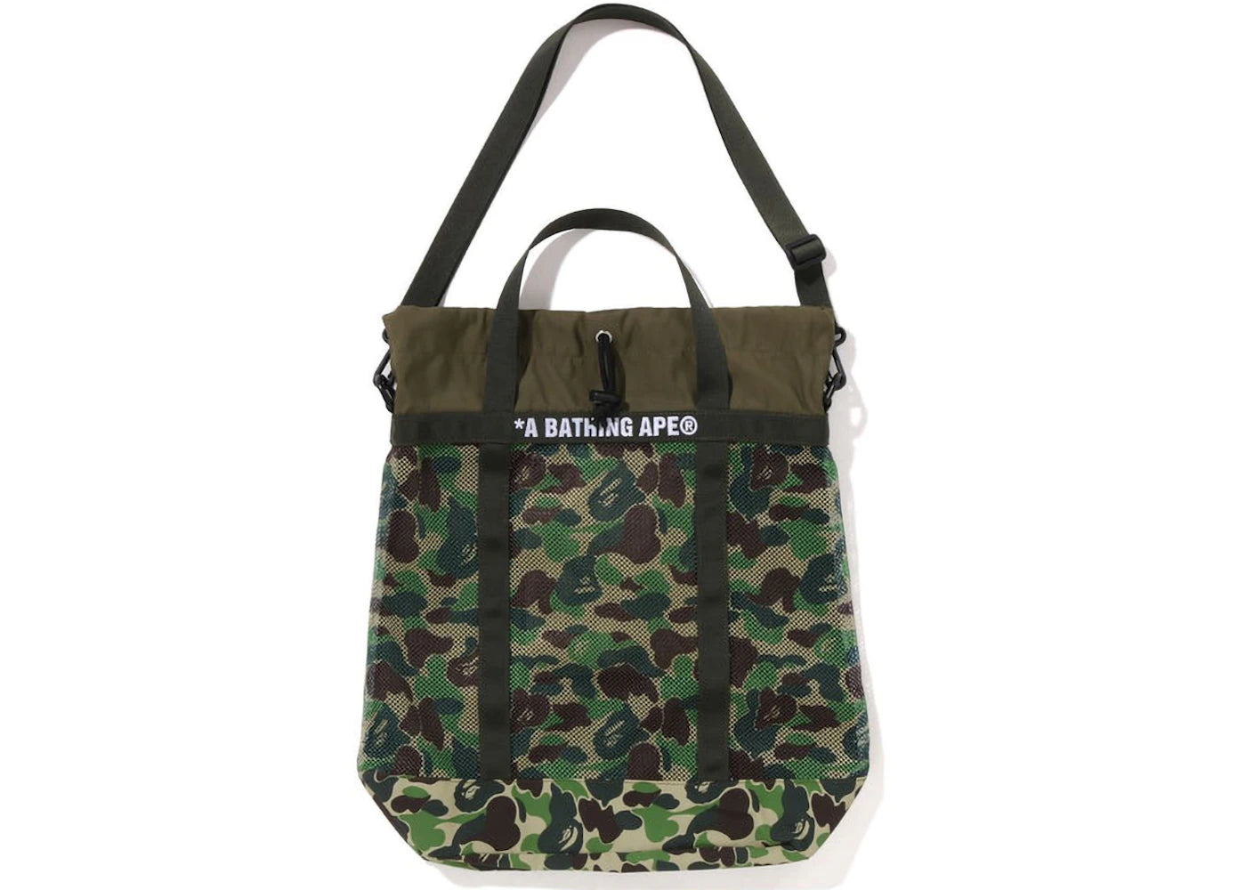The BAPE ABC Camo Mesh Tote Bag Green is now available at Side Kicks!