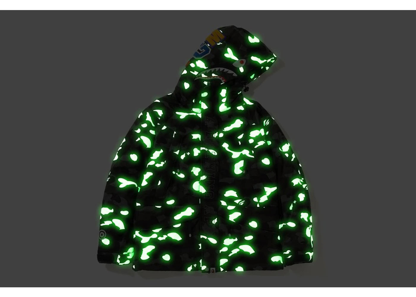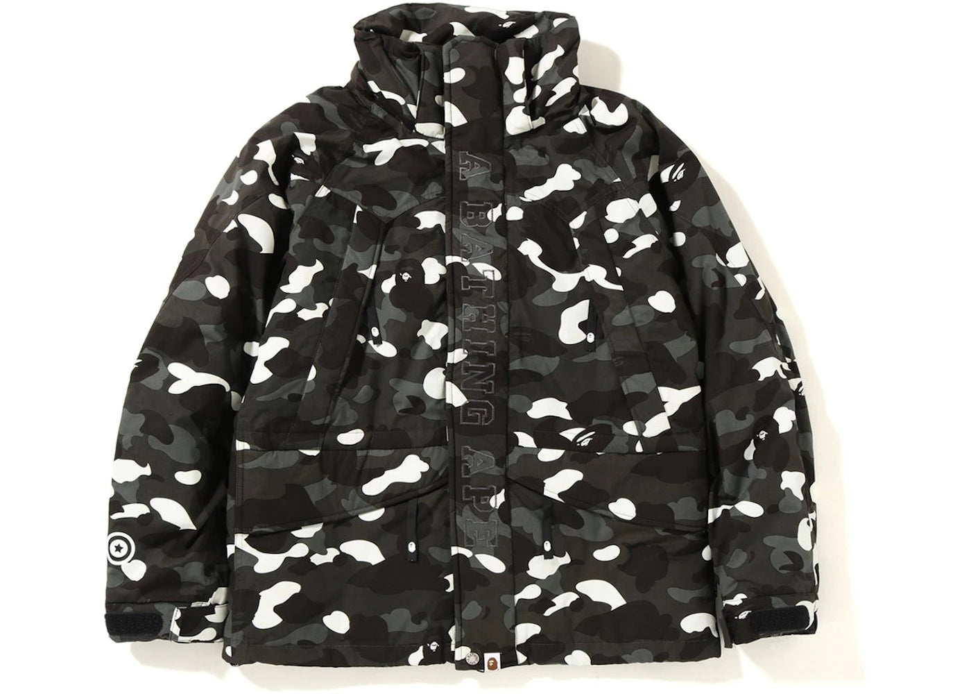 The BAPE City Camo Shark Snowboard Down Jacket Black is now available at Side Kicks!