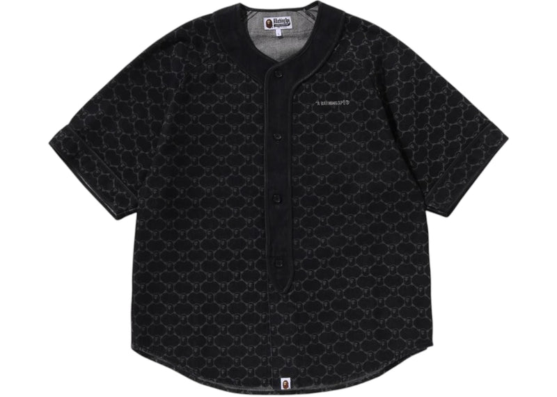 The BAPE College Monogram Baseball S/S Denim Shirt Black is now available at Side Kicks!