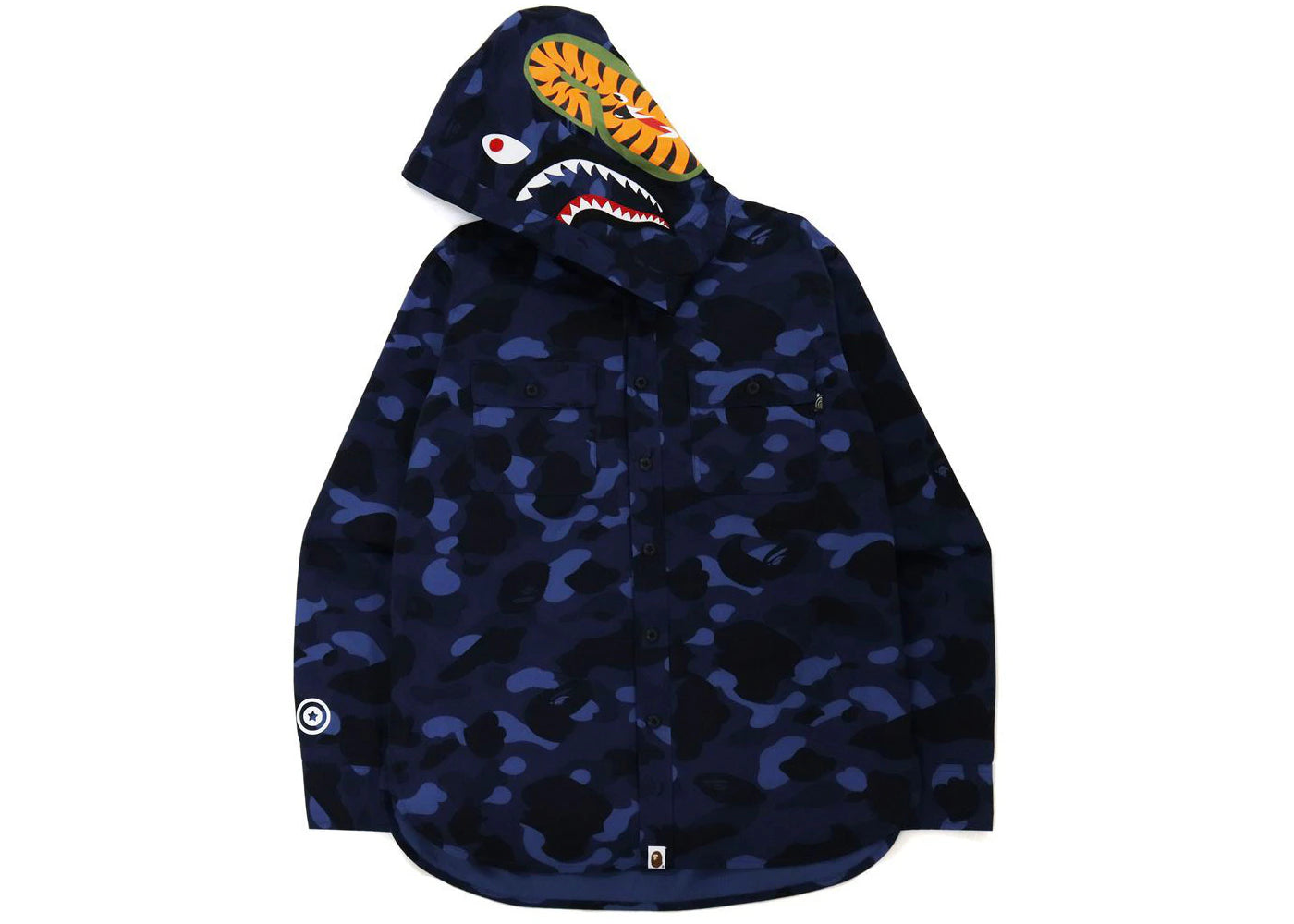 The BAPE Color Camo Shark Hoodie Shirt (FW21) Navy is now available at Side Kicks!