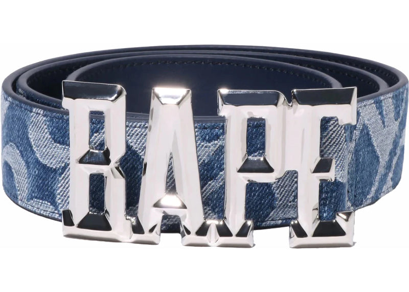 The BAPE Denim Monogram Belt Blue is now available at Side Kicks!