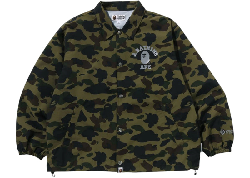 The BAPE Gore-Tex Wind Stopper 1St Camo Relaxed Coach Jacket Jacket Green is now available at Side Kicks!