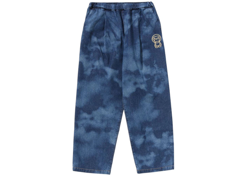The BAPE Kids Milo High Tone Bleach 10oz Denim Pants Multicolor is now available at Side Kicks!