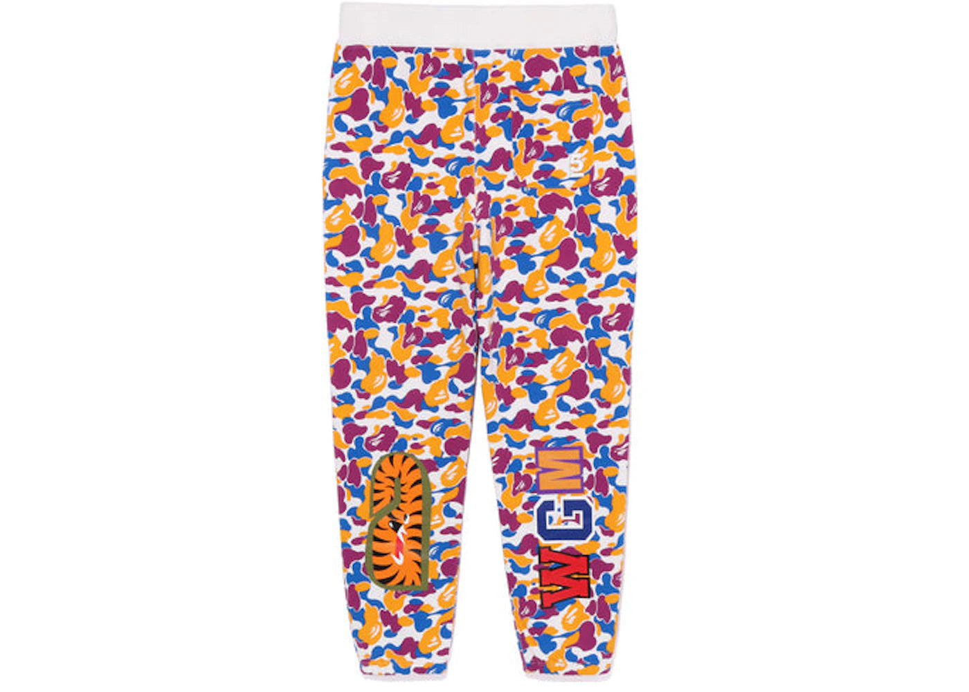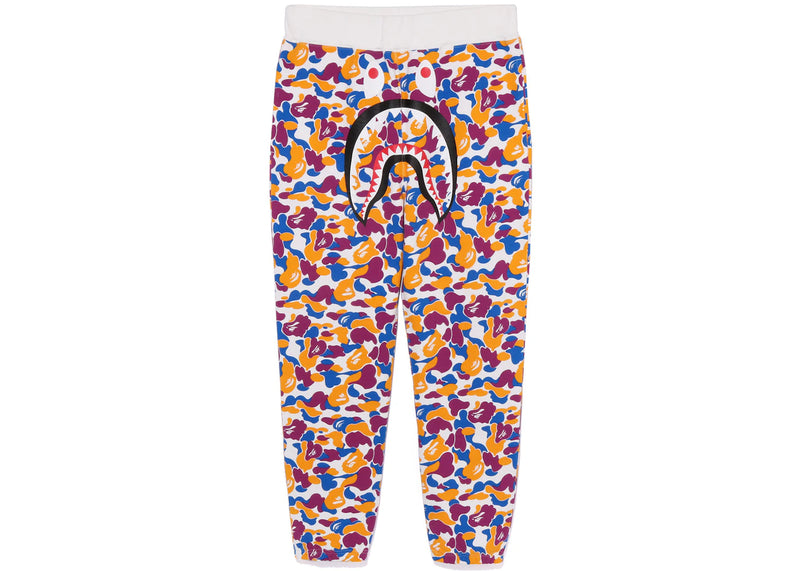 The BAPE LA Store 5th Anniversary LA Camo Shark Sweatpants Purple Yellow Blue is now available at Side Kicks!