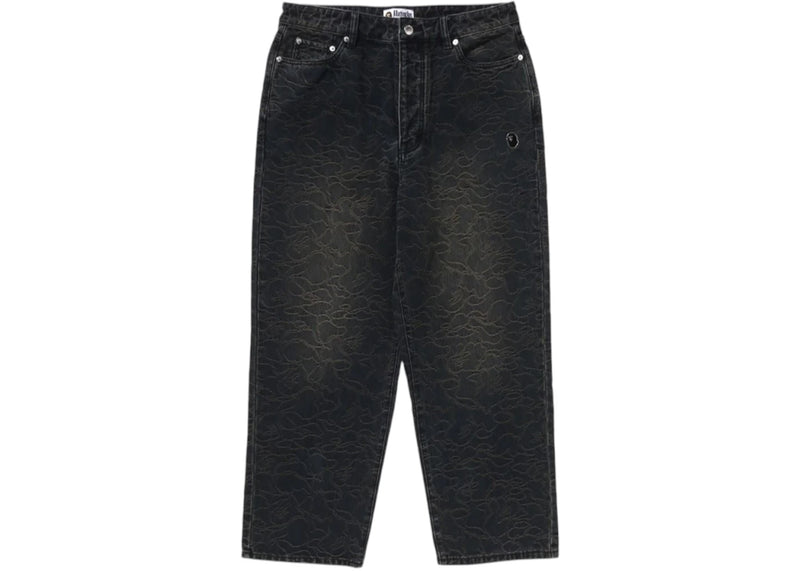 The BAPE Line Camo Jacquard One Point Relaxed Fit 13Oz Denim Pants Gray is now available at Side Kicks!
