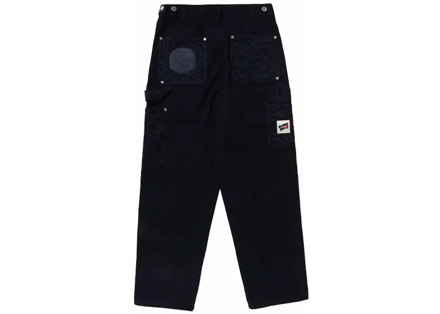 The BAPE Line Camo Patch Denim Double Knee Work Pants Indigo is now available at Side Kicks!