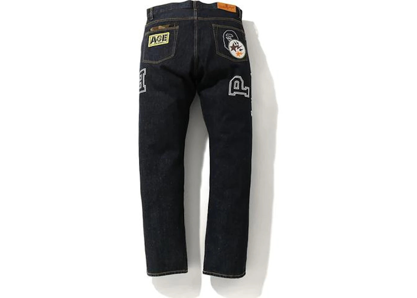 The BAPE Multi Emblem Denim Pants Indigo is now available at Side Kicks!