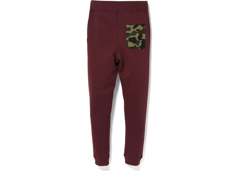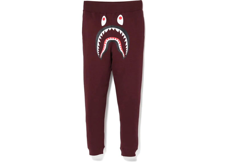 The BAPE Shark Slim Sweat Pants Burgundy/Green is now available at Side Kicks!