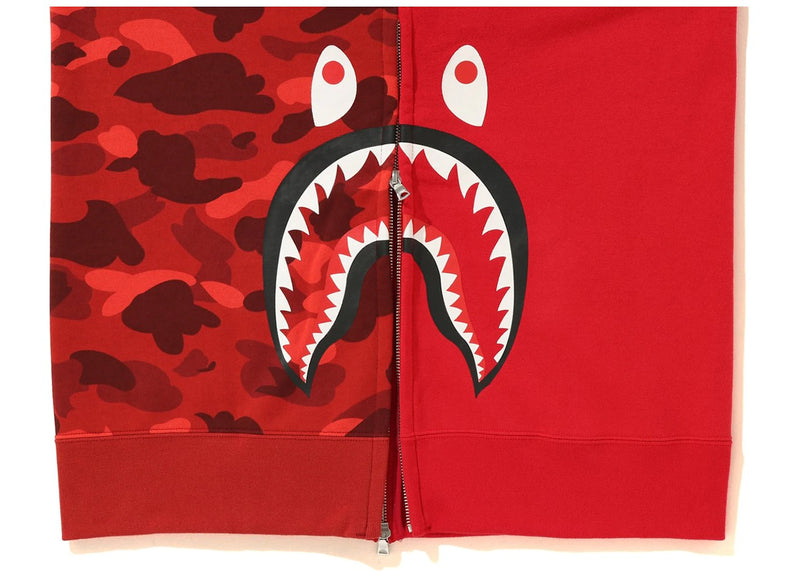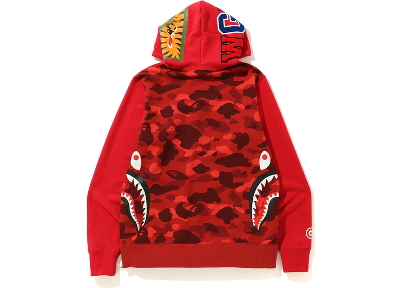 The BAPE Side Zip Shark Wide Pullover Hoodie Red/Red is now available at Side Kicks!