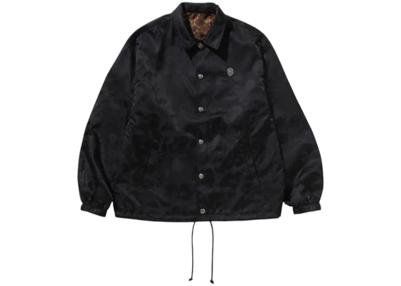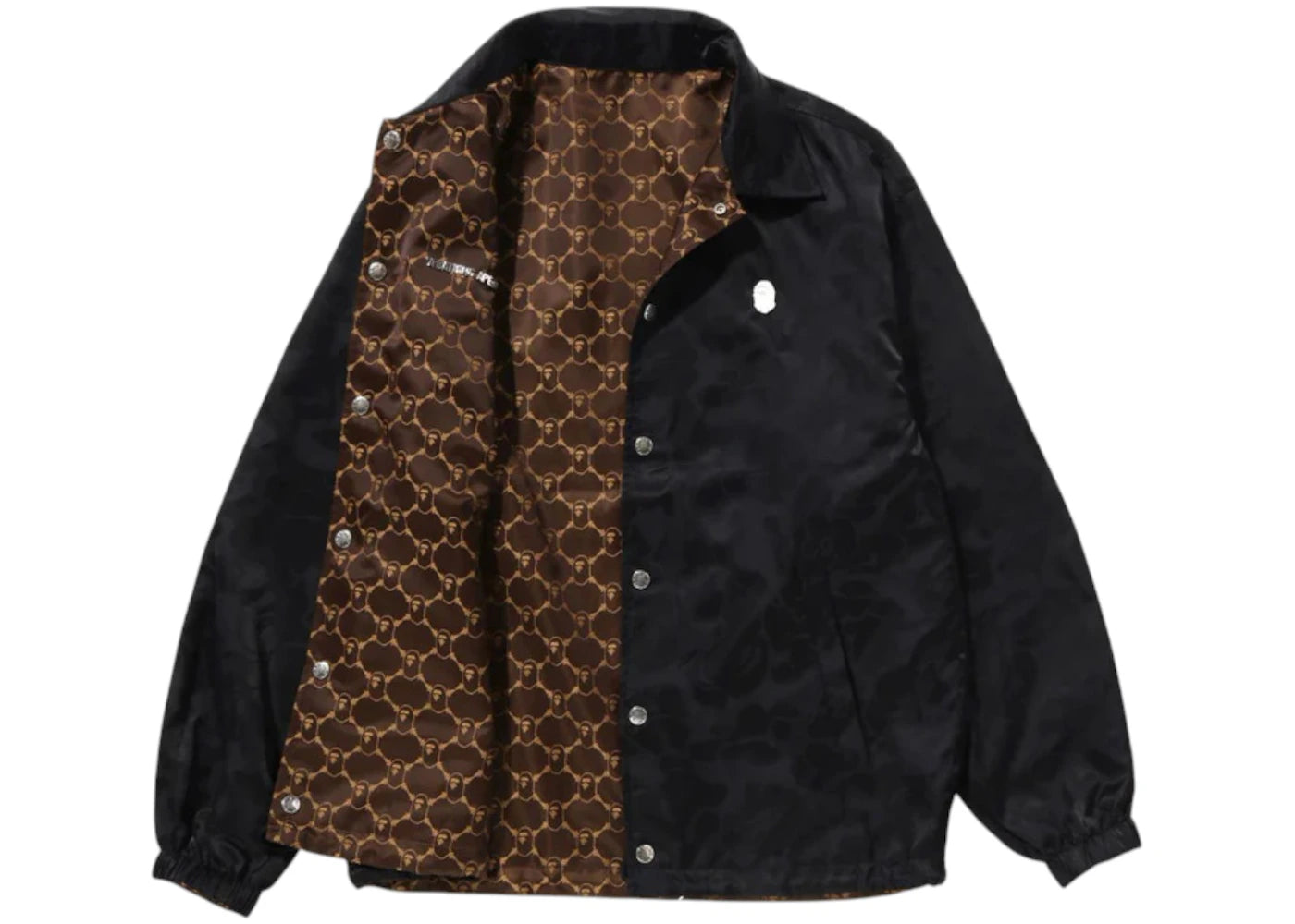 The BAPE Solid Camo Jacquard Nylon Reversible Coach Jacket Black is now available at Side Kicks!