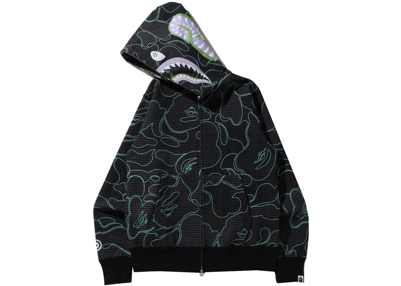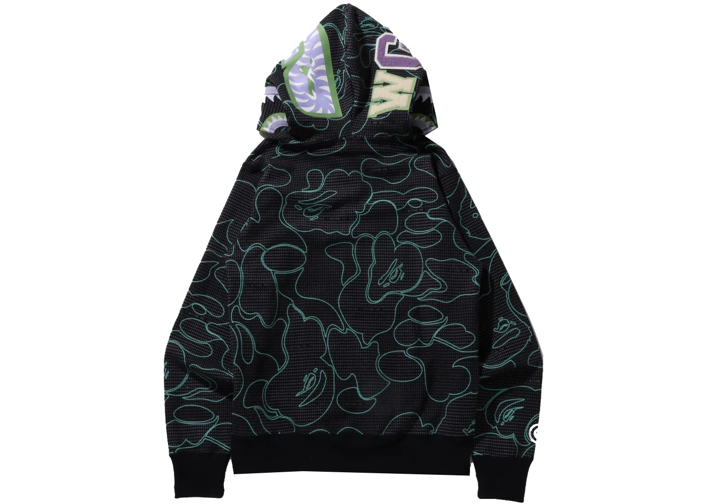 The BAPE Text Code Camo Shark Full Zip Hoodie Black is now available at Side Kicks!