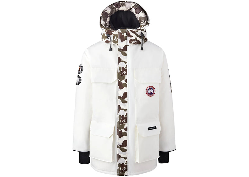The BAPE x Canada Goose x Concepts Expedition Jacket White/Snow Camo is now available at Side Kicks!