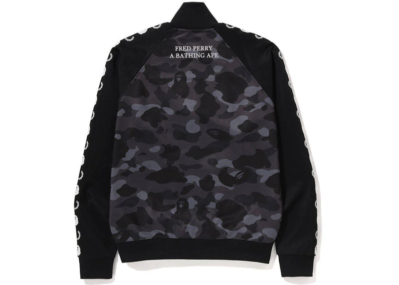 The BAPE x Fred Perry Color Camo Track Jacket Black is now available at Side Kicks!