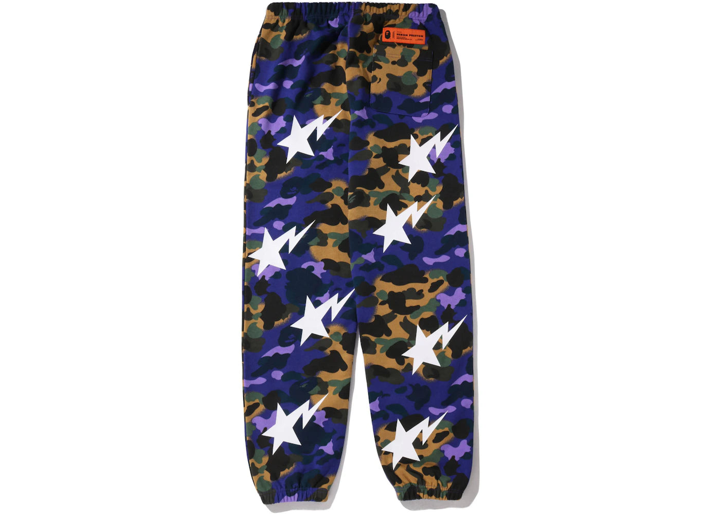 The BAPE x Heron Preston Mix 1st Camo Sweatpants Purple is now available at Side Kicks!