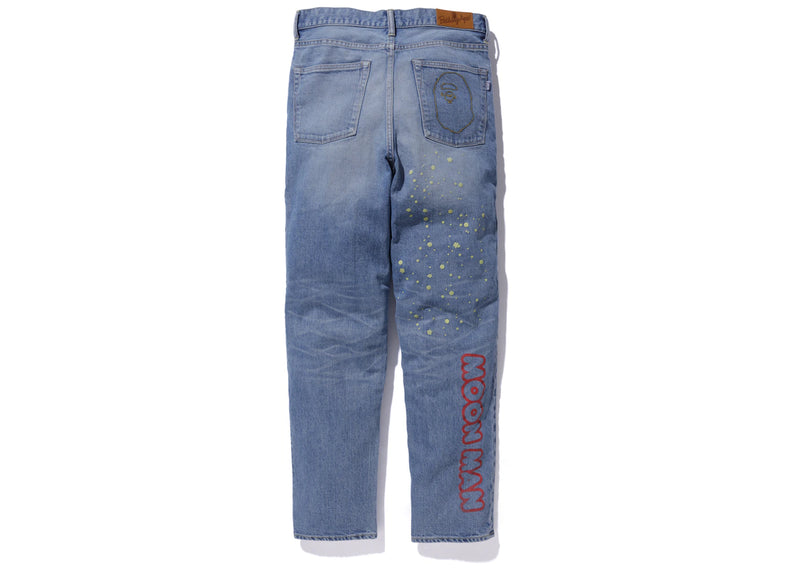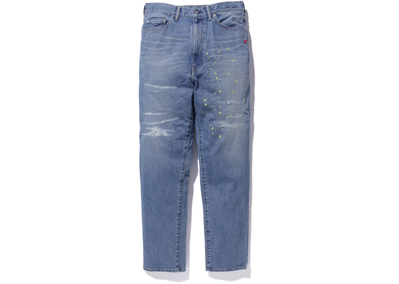 The BAPE x Kid Cudi Damaged Denim Pants Light Wash is now available at Side Kicks!