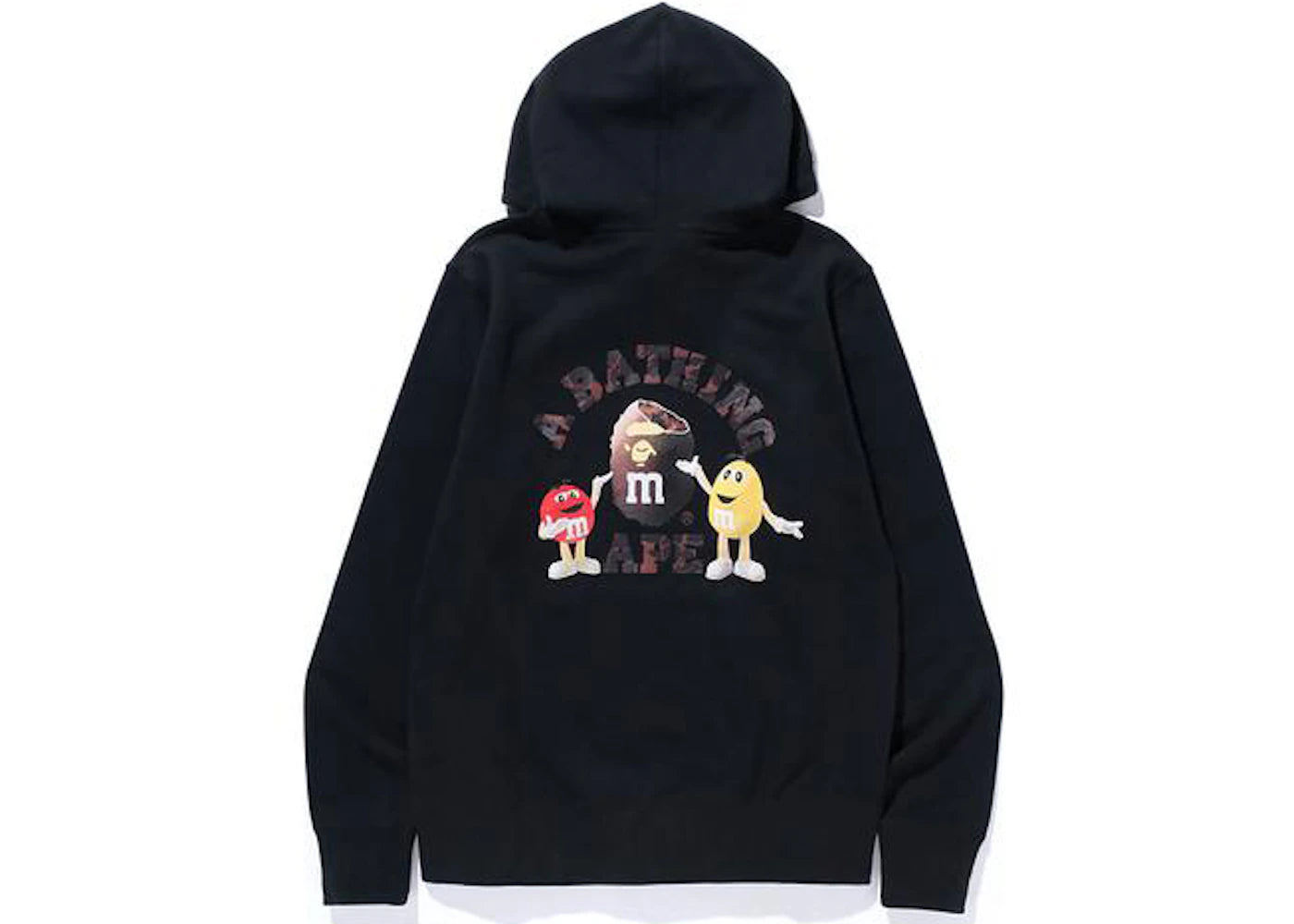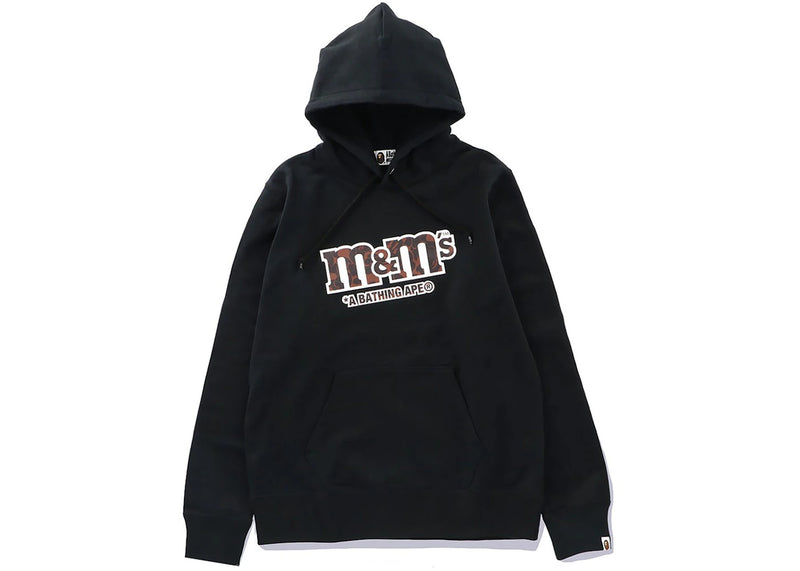 The BAPE x M&M's Mens College Pullover Hoodie Black is now available at Side Kicks!