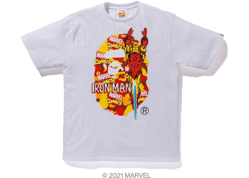 The BAPE x Marvel Comics Camo Iron Man Tee White is now available at Side Kicks!