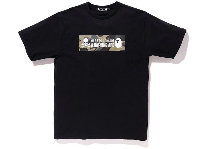 The BAPE x Mastermind Japan Camo Logo Tee Black/Green is now available at Side Kicks!