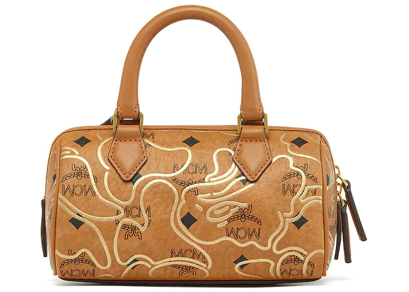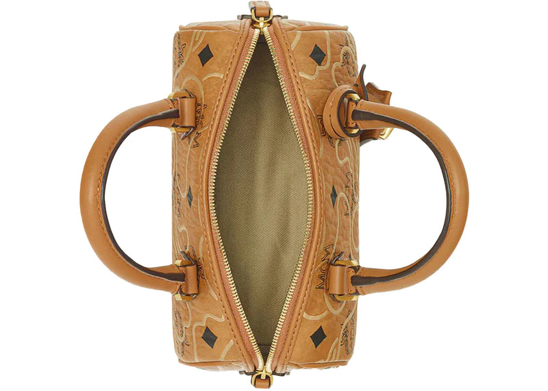 The BAPE x MCM Mini Boston Bag Beige is now available at Side Kicks!