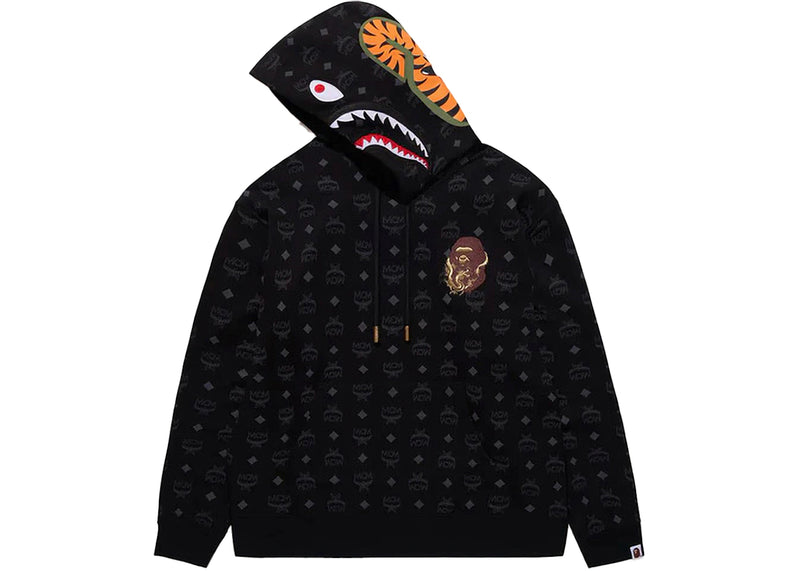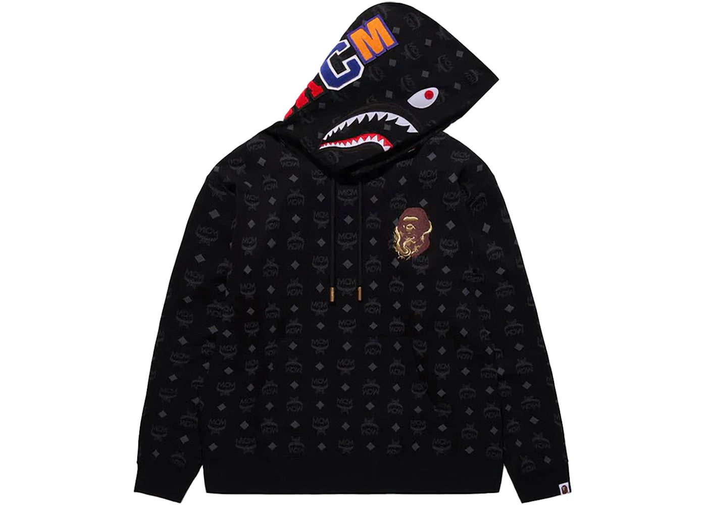 The BAPE x MCM Shark Pullover Hoodie Black is now available at Side Kicks!
