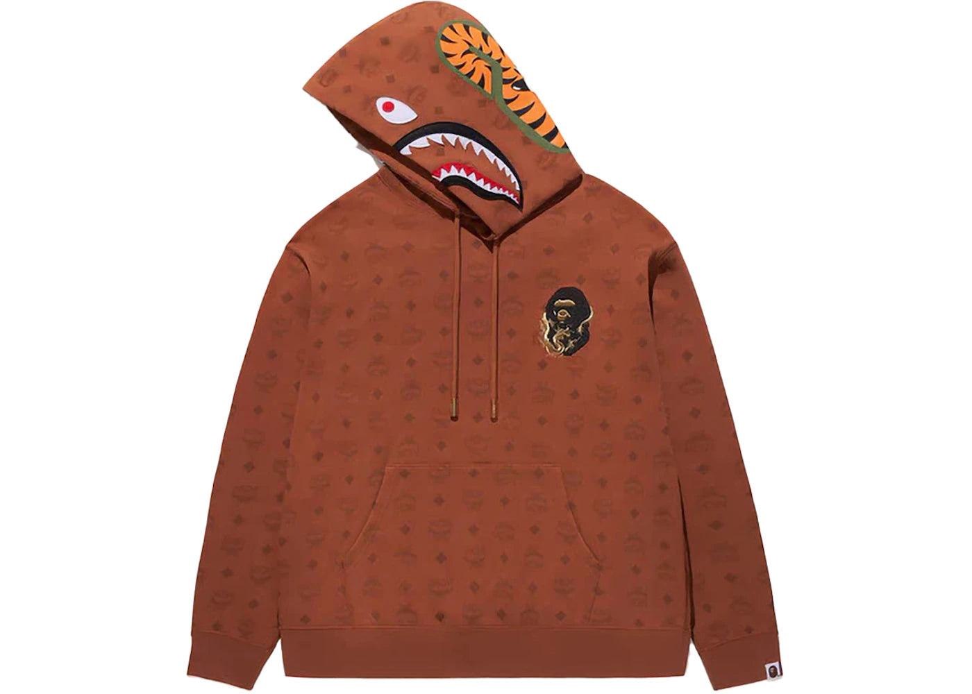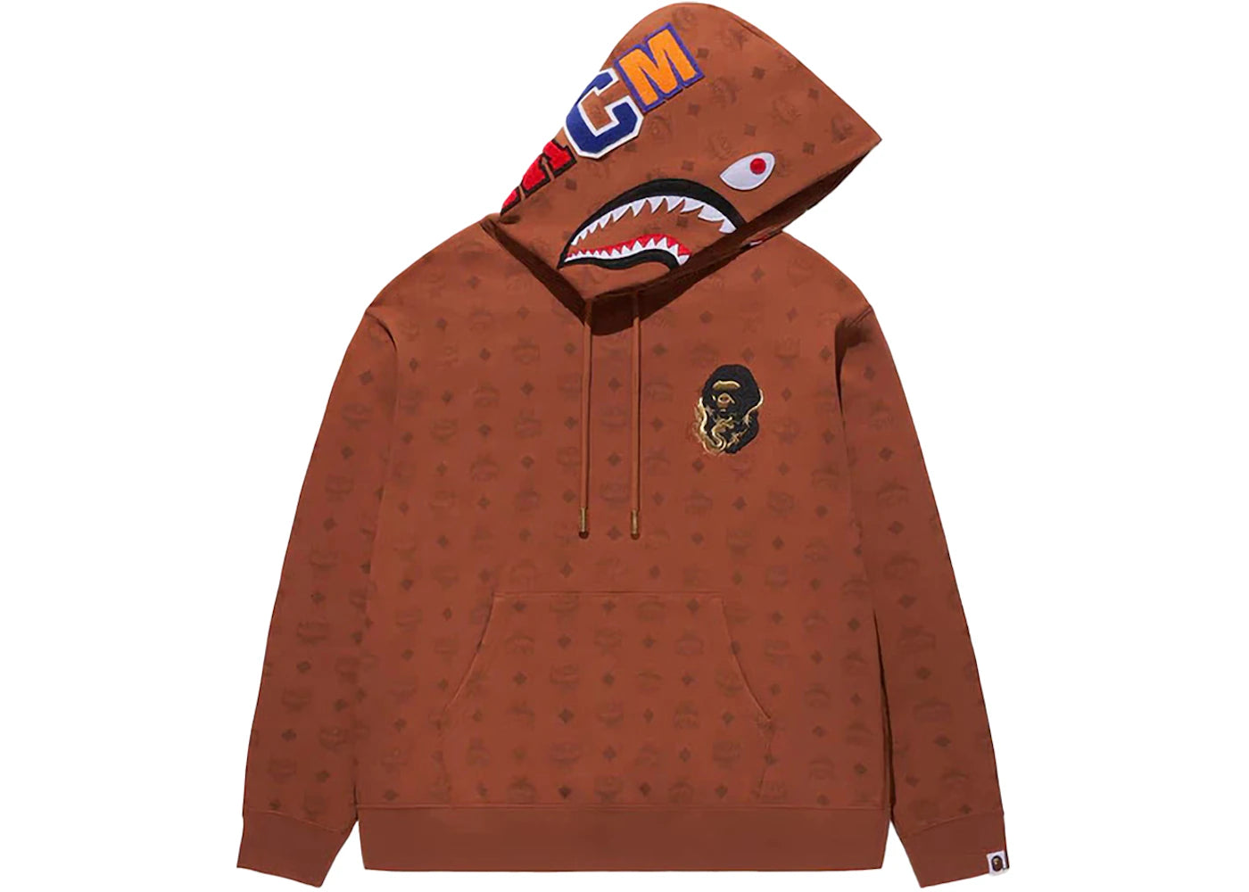 The BAPE x MCM Shark Pullover Hoodie Brown is now available at Side Kicks!