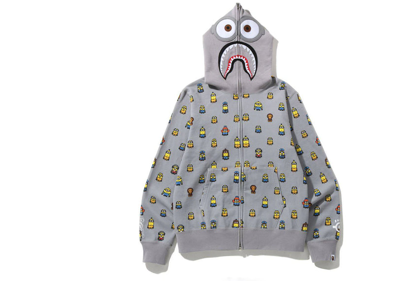 The BAPE x Minions Shark Full Zip Hoodie Grey is now available at Side Kicks!