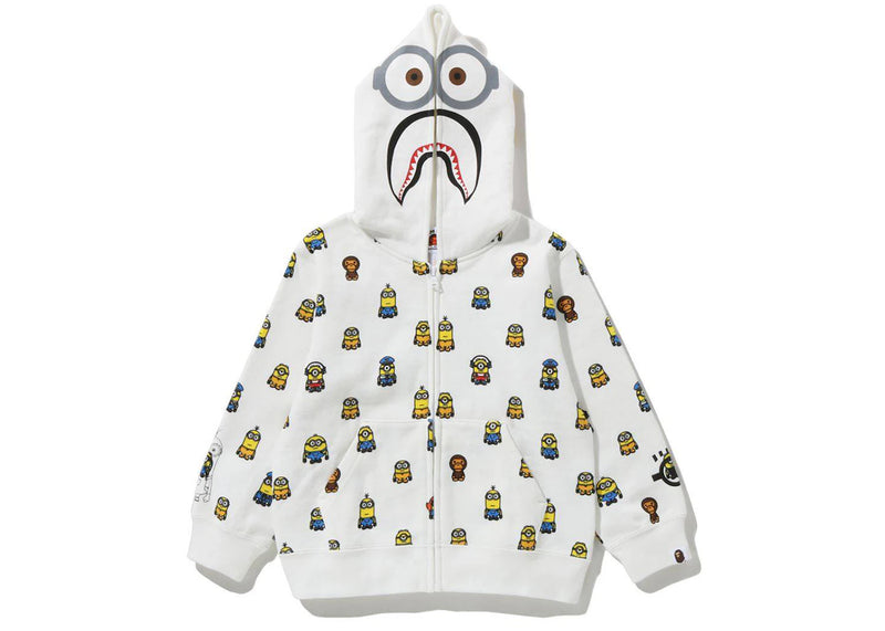 The BAPE x Minions Shark Full Zip Kids Hoodie White is now available at Side Kicks!