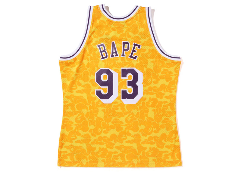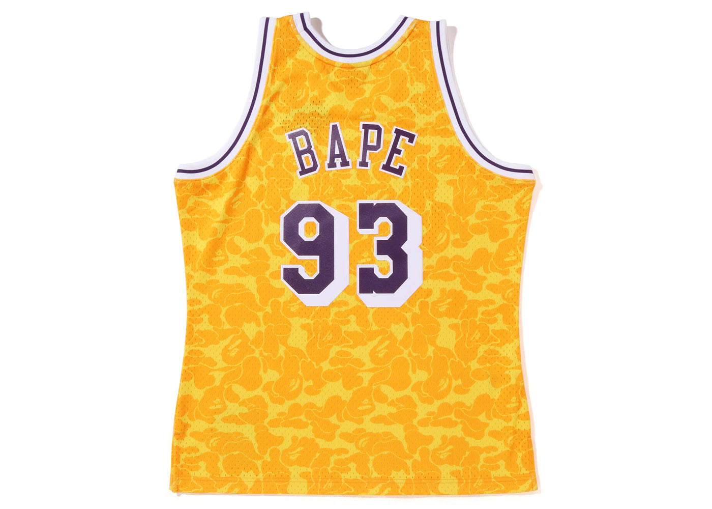The BAPE x Mitchell & Ness Los Angeles Lakers Jersey Yellow is now available at Side Kicks!