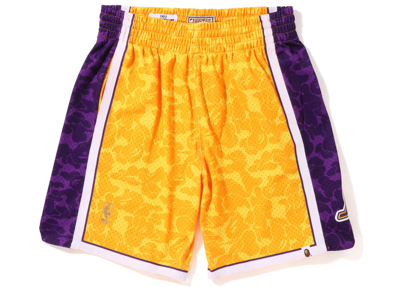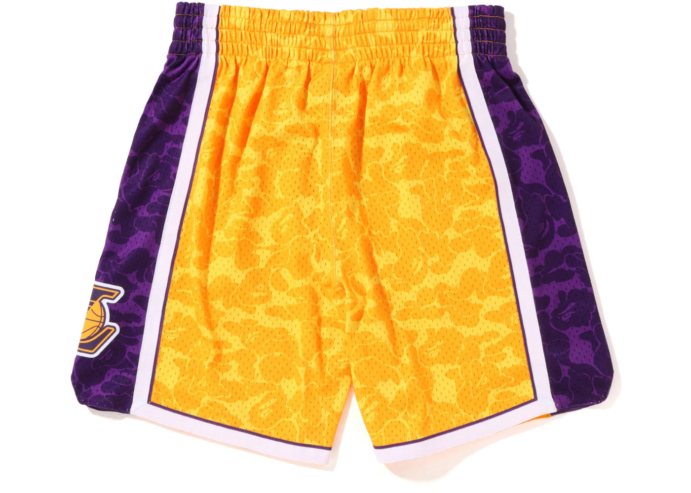 The BAPE x Mitchell & Ness Los Angeles Lakers Shorts Yellow is now available at Side Kicks!