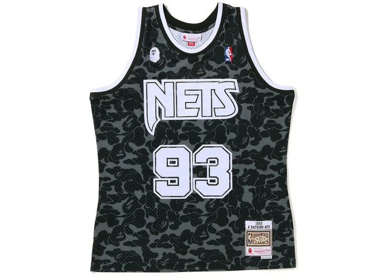 The BAPE x Mitchell & Ness New Jersey Nets Jersey Black is now available at Side Kicks!