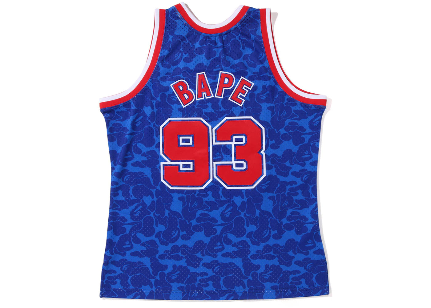 The BAPE x Mitchell & Ness New Jersey Nets Jersey Blue is now available at Side Kicks!
