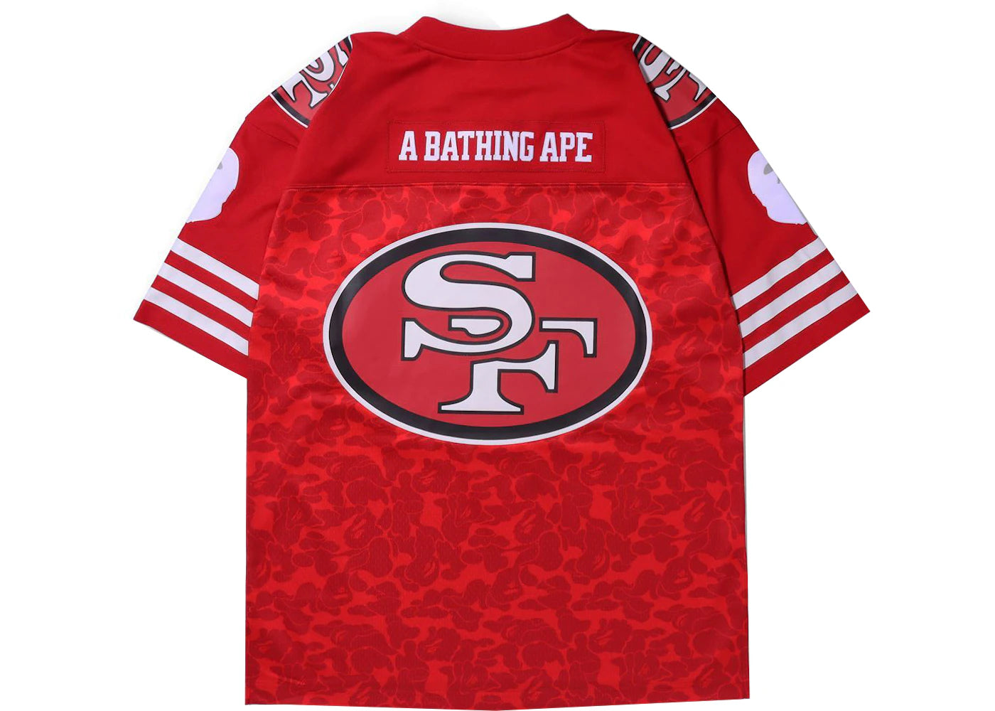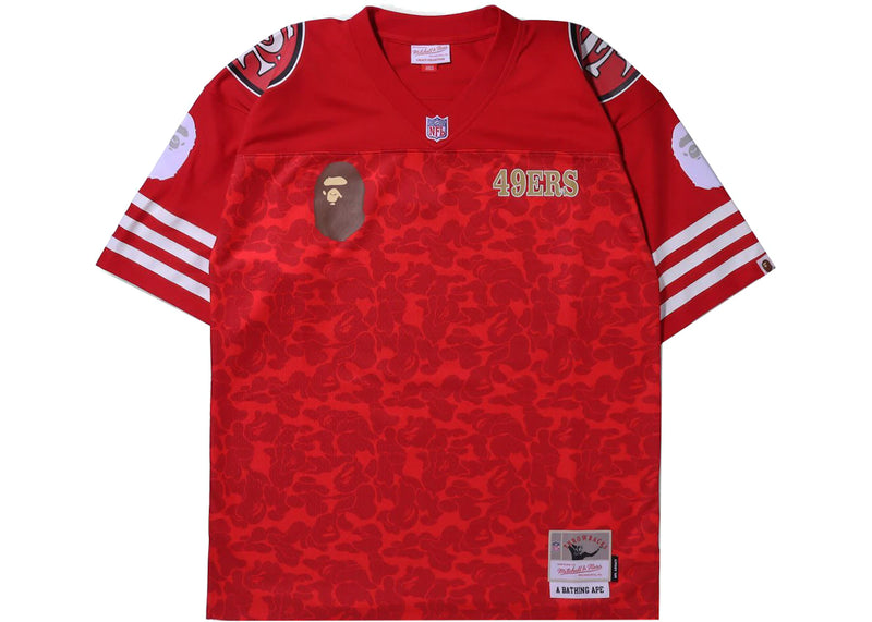The BAPE x Mitchell & Ness NFL San Francisco 49ers Legacy Jersey Red is now available at Side Kicks!