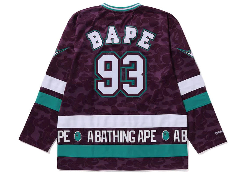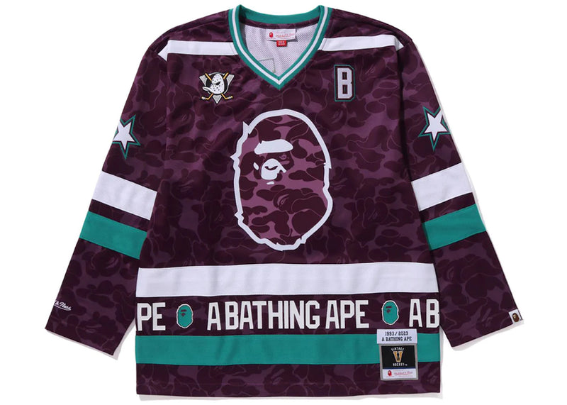 BAPE x Mitchell & Ness NHL Anaheim Ducks Mesh Hockey Jersey L/S Tee Purple