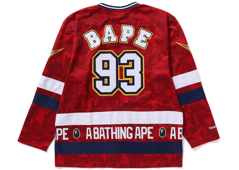 BAPE x Mitchell & Ness NHL Florida Panthers Mesh Hockey Jersey L/S Tee Red