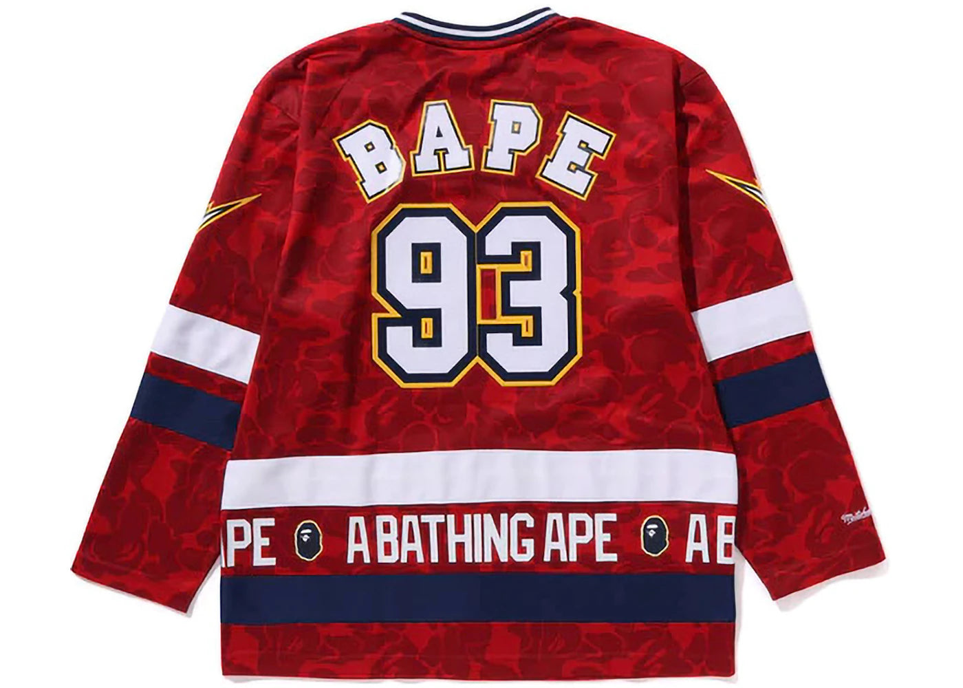 The BAPE x Mitchell & Ness NHL Florida Panthers Mesh Hockey Jersey L/S Tee Red is now available at Side Kicks!