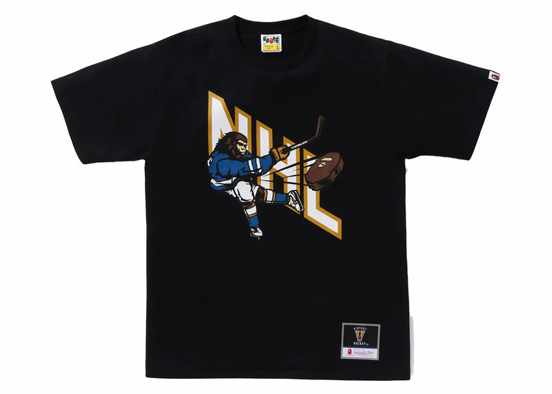 The BAPE x Mitchell & Ness NHL Hockey Graphic Tee Black is now available at Side Kicks!