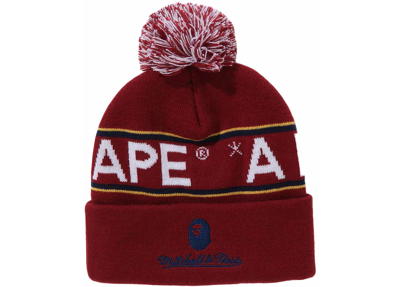 The BAPE x Mitchell & Ness NHL Pom Beanie Burgundy is now available at Side Kicks!