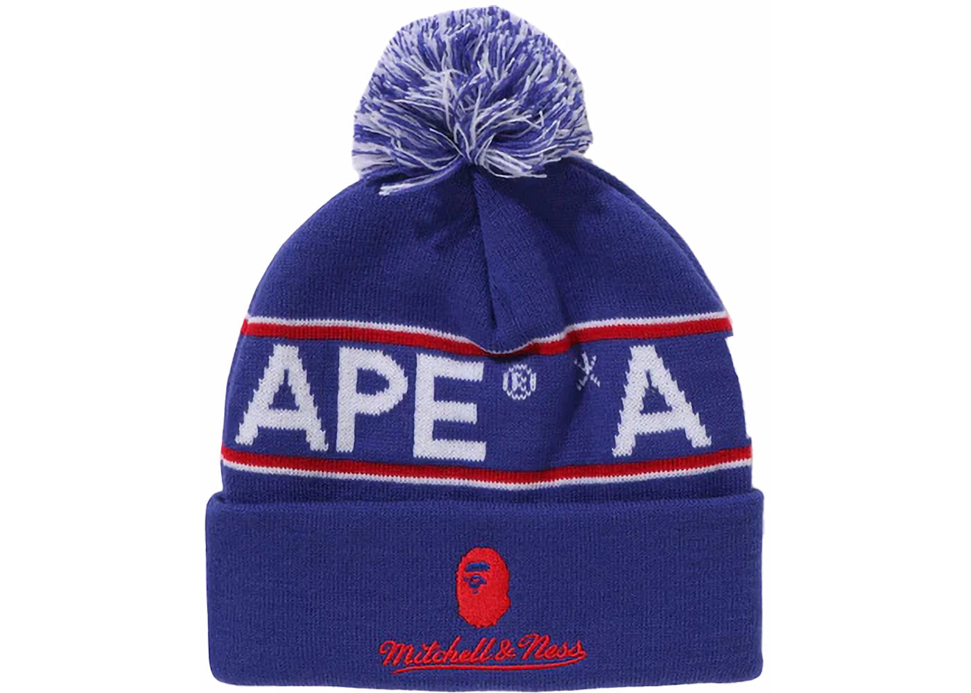 The BAPE x Mitchell & Ness NHL Pom Beanie Navy is now available at Side Kicks!