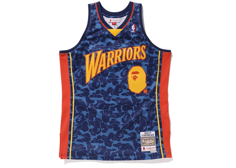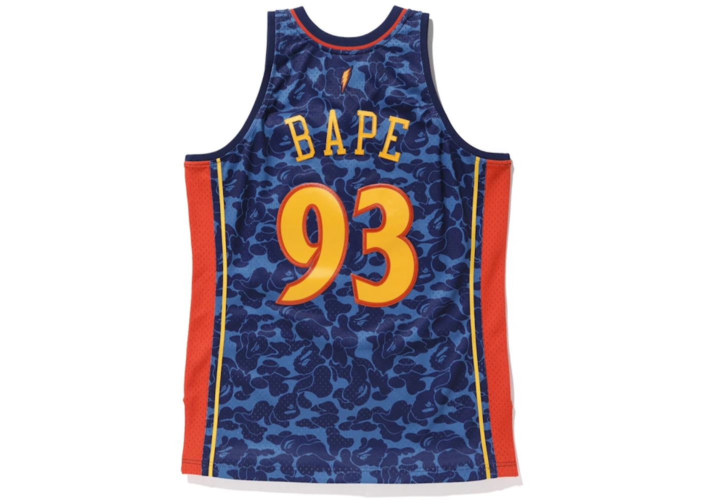 BAPE x Mitchell & Ness Warriors ABC Basketball Swingman Jersey Navy