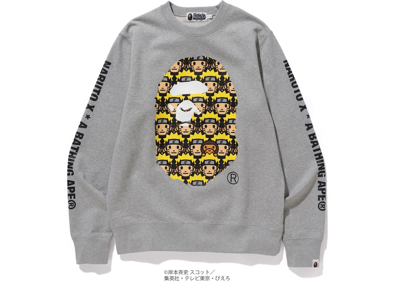 The BAPE x Naruto Ape Head Crewneck Grey is now available at Side Kicks!