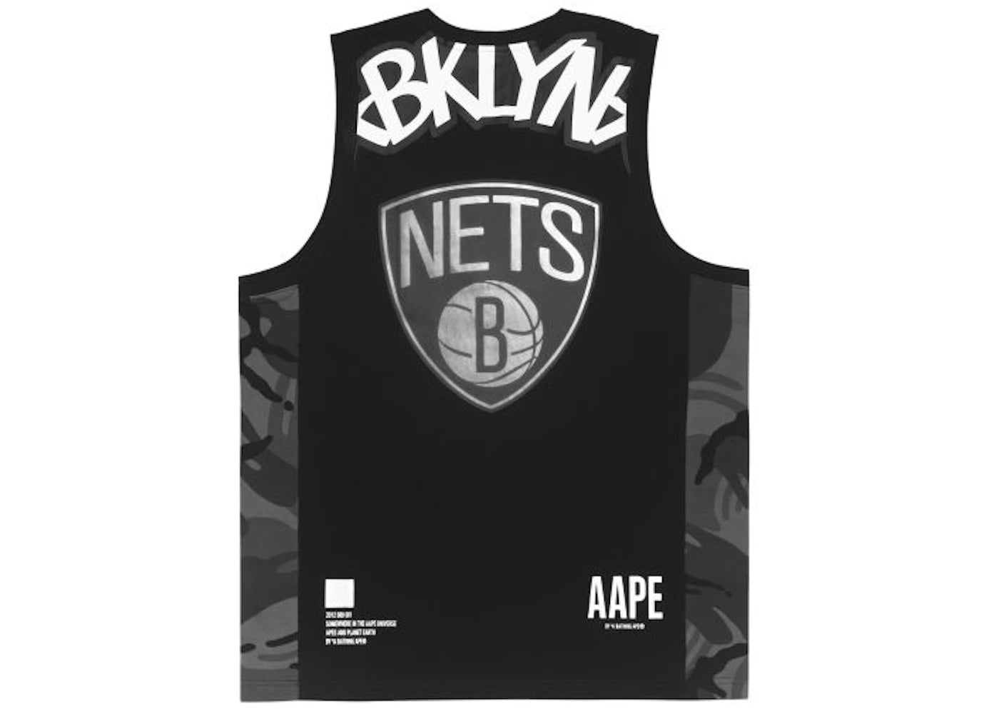 The BAPE x NBA Style Ape Face Blooklyn Nets Basketball Tank Top Black is now available at Side Kicks!