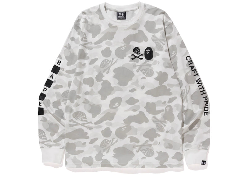 The BAPE x Neighborhood Camo Long Sleeve Tee White is now available at Side Kicks!
