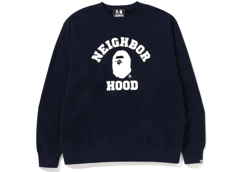 The BAPE x Neighborhood Relaxed Fit Crewneck Sweatshirt Navy is now available at Side Kicks!