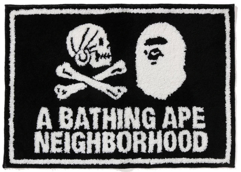 The BAPE x Neighborhood Rug Mat Black White is now available at Side Kicks!