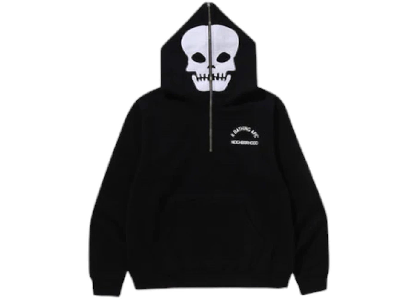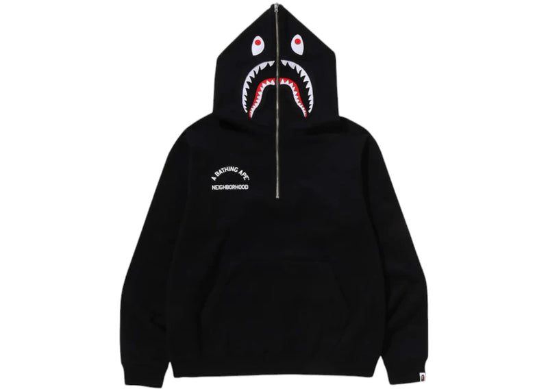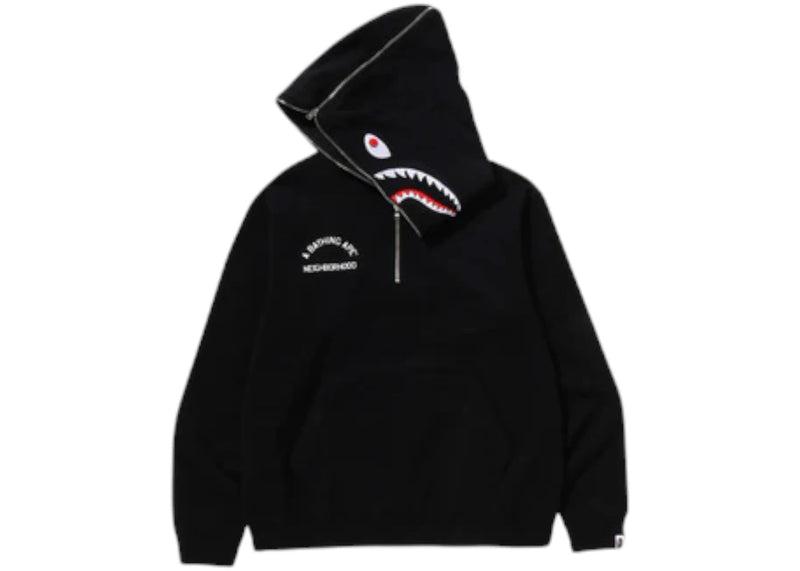 The BAPE x Neighborhood Two Face Half Zip Pullover Hoodie Black is now available at Side Kicks!